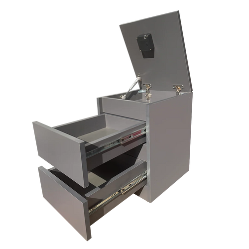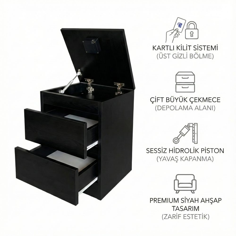 Gizli Bölmeli Komodin, sadece şık bir görünüm sunmakla kalmayıp, aynı zamanda gizli bölmesi sayesinde değerli eşyalarınızı güvenle saklayabilmenizi sağlar. Modern tasarımı ile odanıza zarafet katarken, pratik bir kullanım sunar.